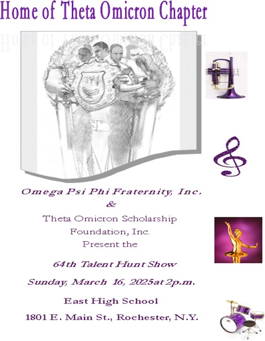Omega Talent Hunt is one of the many Internationally Mandated Programs through Omega Psi Phi Fraternity, Inc. The purpose of the Omega Talent Hunt is to search for the best talent and provide exposure for the talented as well as the encouragement of such talent through scholarships and financial assistance to talented young people participating in the performing arts. Local winners in each of the seven categories receive cash awards. The overall winner is entered in and transported at our expense, into the five state regional competition. The regional winner receives $1000 and an all expenses paid trip to perform at Omega’s National Convention.